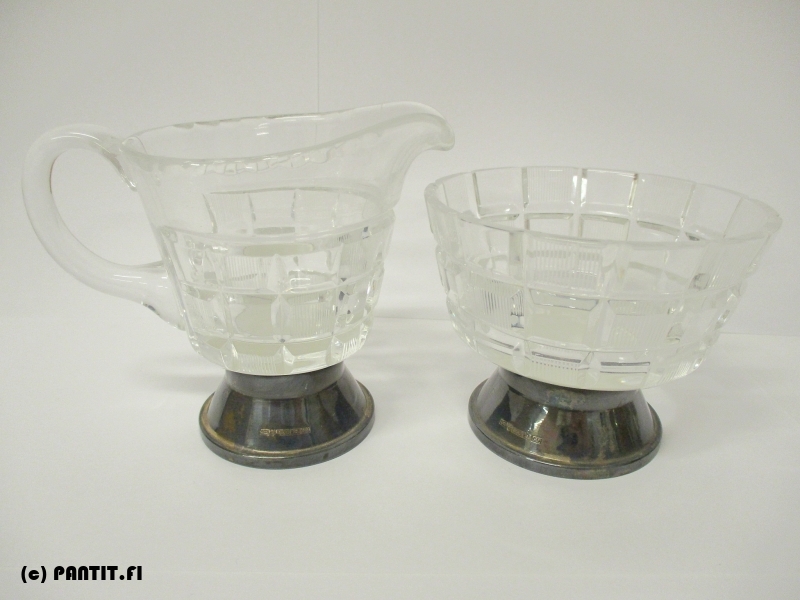 (8) lasikermakko ja -sokerikko hopeajalalla, ei kaiverruksia (830)