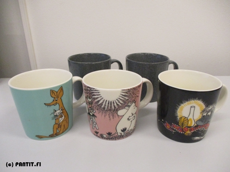 (139) 2 kpl Iittala Teema duo harmaa mukeja ja 3 kpl Arabia muumi mukeja